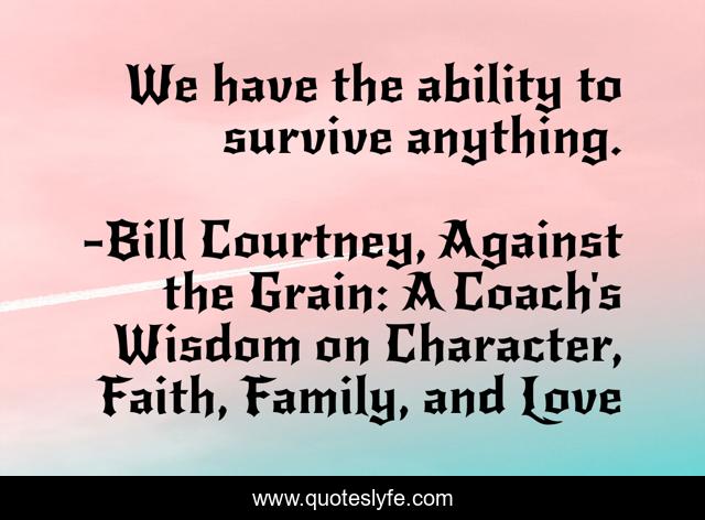 "Bill Courtney, Against the Grain: A Coach's Wisdom on Character, Faith, Family, and Love Quotes." Quoteslyfe.com, 2025. Sat. 06 Dec. 2025. <https://www.quoteslyfe.com/quote/We-have-the-ability-to-survive-anything-160346>.