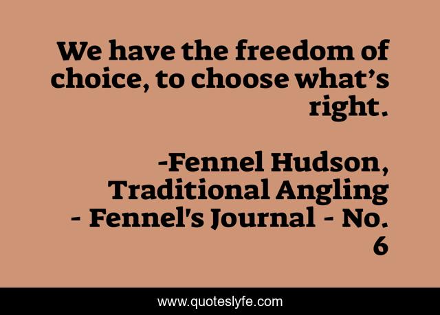 "Fennel Hudson, Traditional Angling - Fennel's Journal - No. 6 Quotes." Quoteslyfe.com, 2025. Mon. 08 Dec. 2025. <https://www.quoteslyfe.com/quote/We-have-the-freedom-of-choice-to-54758>.