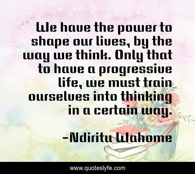 This page presents the quote "We have the power to shape our lives, by the way we think. Only that to have a progressive life, we must train ourselves into thinking in a certain way.". Author of this quote is Ndiritu Wahome. This quote is about life, literature, art, success, philosophy, happiness,.