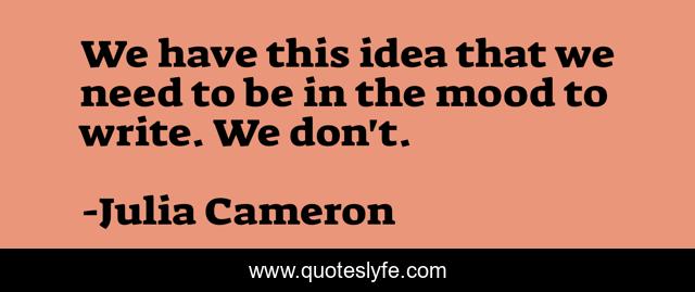 This page presents the quote "We have this idea that we need to be in the mood to write. We don't.". Author of this quote is Julia Cameron. .