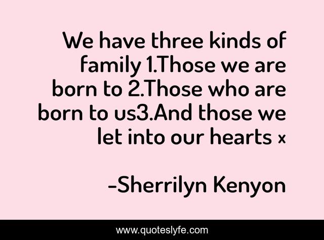 This page presents the quote "We have three kinds of family 1.Those we are born to 2.Those who are born to us3.And those we let into our hearts ♥". Author of this quote is Sherrilyn Kenyon. .