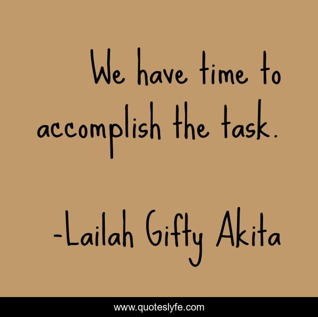 "Lailah Gifty Akita Quotes." Quoteslyfe.com, 2025. Sun. 07 Dec. 2025. <https://www.quoteslyfe.com/quote/We-have-time-to-accomplish-the-task-47411>.