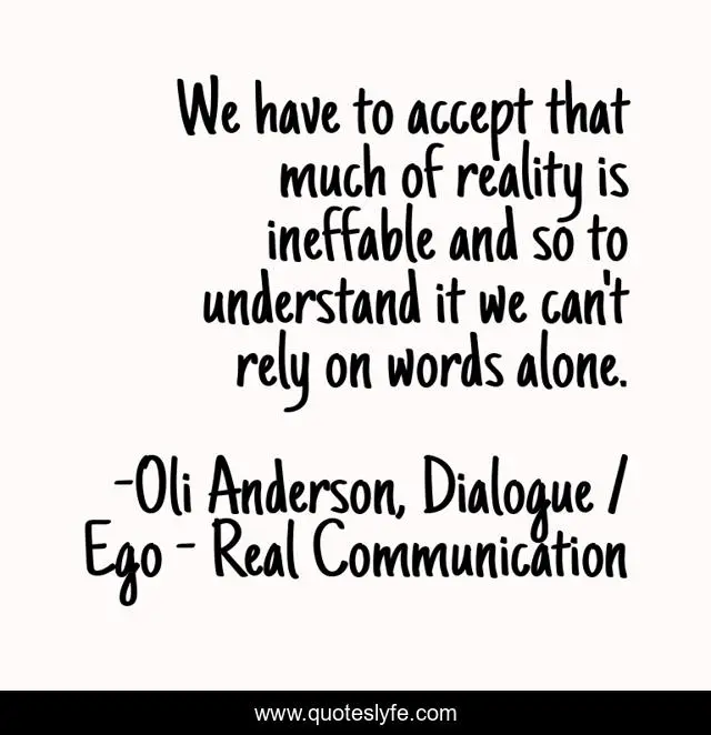 This page presents the quote "We have to accept that much of reality is ineffable and so to understand it we can't rely on words alone.". Author of this quote is Oli Anderson, Dialogue / Ego - Real Communication. This quote is about dialogue, communication, collaboration, organisational-leadership, reality, ego, design-thinking,.