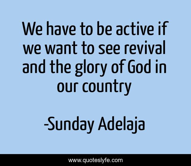 This page presents the quote "We have to be active if we want to see revival and the glory of God in our country". Author of this quote is Sunday Adelaja. This quote is about glory, revival, country, national-transformation, god, active,.