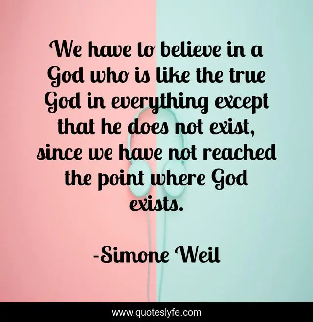 This page presents the quote "We have to believe in a God who is like the true God in everything except that he does not exist, since we have not reached the point where God exists.". Author of this quote is Simone Weil. .