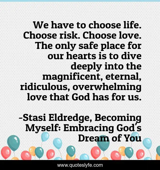 "Stasi Eldredge, Becoming Myself: Embracing God's Dream of You Quotes." Quoteslyfe.com, 2025. Mon. 08 Dec. 2025. <https://www.quoteslyfe.com/quote/We-have-to-choose-life-Choose-risk-174953>.