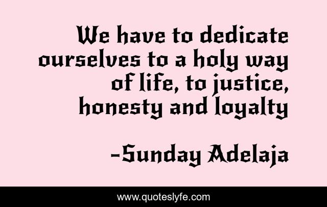 This page presents the quote "We have to dedicate ourselves to a holy way of life, to justice, honesty and loyalty". Author of this quote is Sunday Adelaja. This quote is about prosperity, life, honesty, holy, justice, money, riches, loyalty, dedicate,.