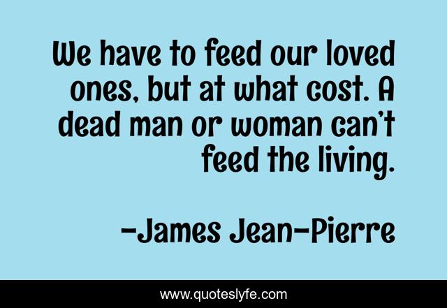 This page presents the quote "We have to feed our loved ones, but at what cost. A dead man or woman can’t feed the living.". Author of this quote is James Jean-Pierre. This quote is about loved-ones, making-a-decision, life, success, overworking,.