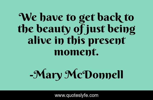 This page presents the quote "We have to get back to the beauty of just being alive in this present moment.". Author of this quote is Mary McDonnell. This quote is about moment, present,.