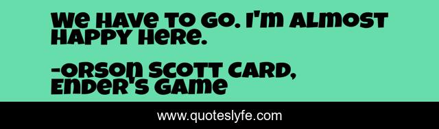 This page presents the quote "We have to go. I'm almost happy here.". Author of this quote is Orson Scott Card, Ender's Game. This quote is about happiness, ender,.