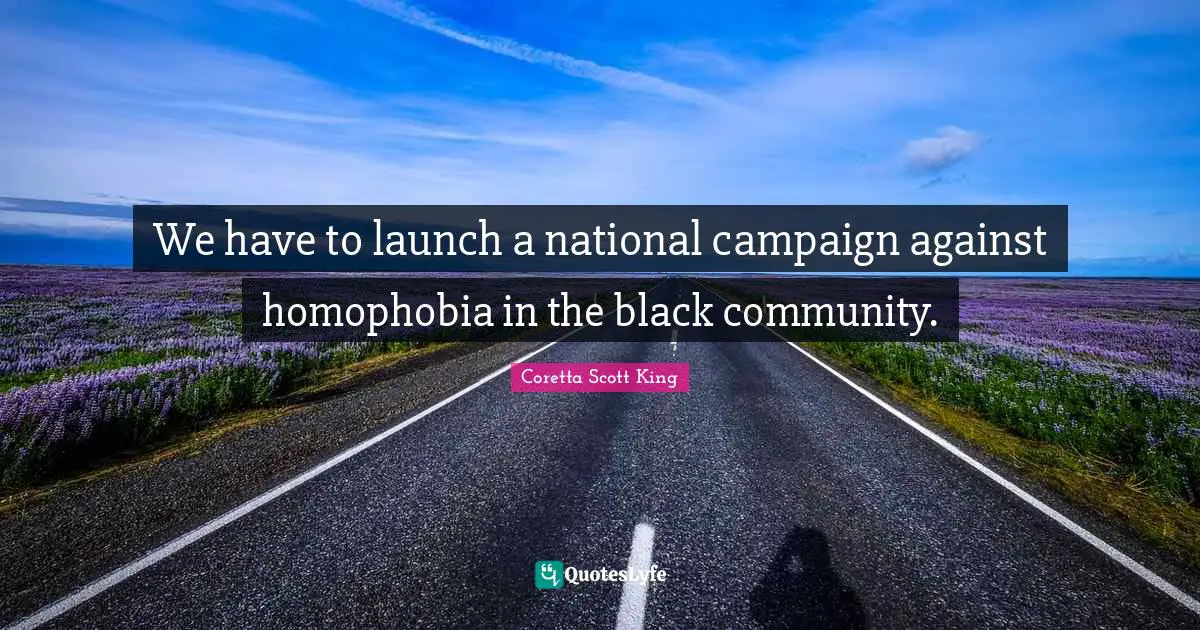 This page presents the quote "We have to launch a national campaign against homophobia in the black community.". Author of this quote is Coretta Scott King. This quote is about black, campaigns, homophobia, community,.