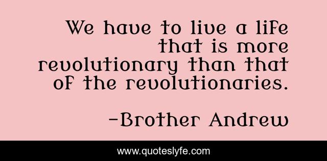This page presents the quote "We have to live a life that is more revolutionary than that of the revolutionaries.". Author of this quote is Brother Andrew. .