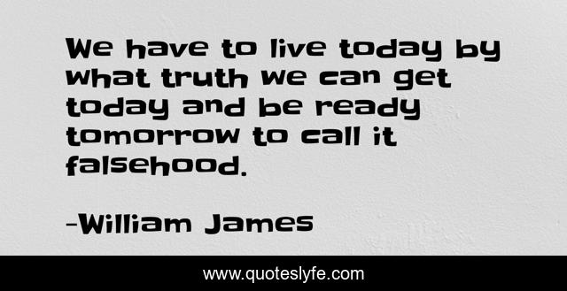 This page presents the quote "We have to live today by what truth we can get today and be ready tomorrow to call it falsehood.". Author of this quote is William James. This quote is about positive, confidence, creating, change,.