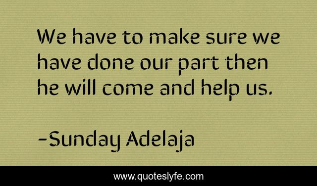 This page presents the quote "We have to make sure we have done our part then he will come and help us.". Author of this quote is Sunday Adelaja. This quote is about godly, help,.