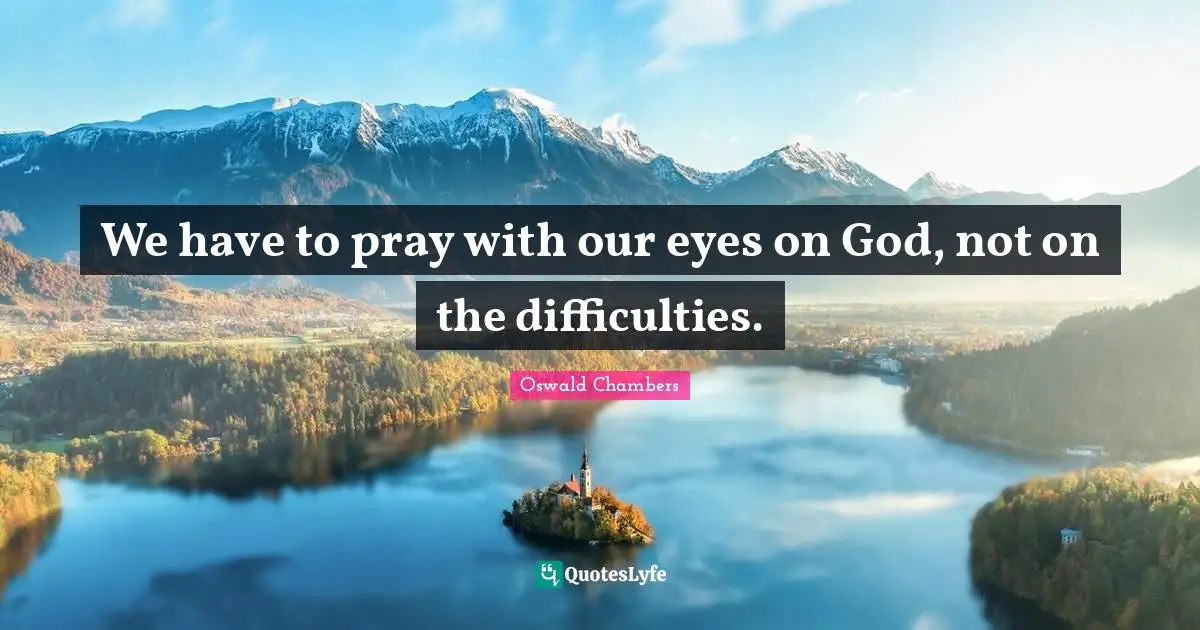 This page presents the quote "We have to pray with our eyes on God, not on the difficulties.". Author of this quote is Oswald Chambers. This quote is about enthusiasm, inspirational, prayer,.