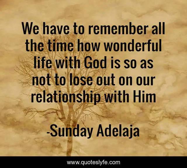 This page presents the quote "We have to remember all the time how wonderful life with God is so as not to lose out on our relationship with Him". Author of this quote is Sunday Adelaja. This quote is about life, remember, relationship, god, time, wonderful, lose,.
