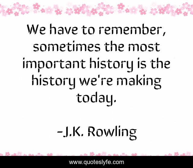 This page presents the quote "We have to remember, sometimes the most important history is the history we're making today.". Author of this quote is J.K. Rowling. This quote is about j-k-rowling, today, history,.