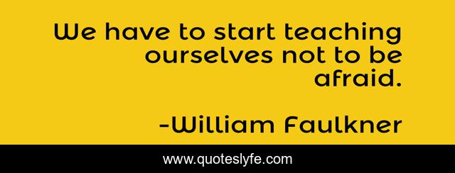 This page presents the quote "We have to start teaching ourselves not to be afraid.". Author of this quote is William Faulkner. This quote is about future, anxiety,.