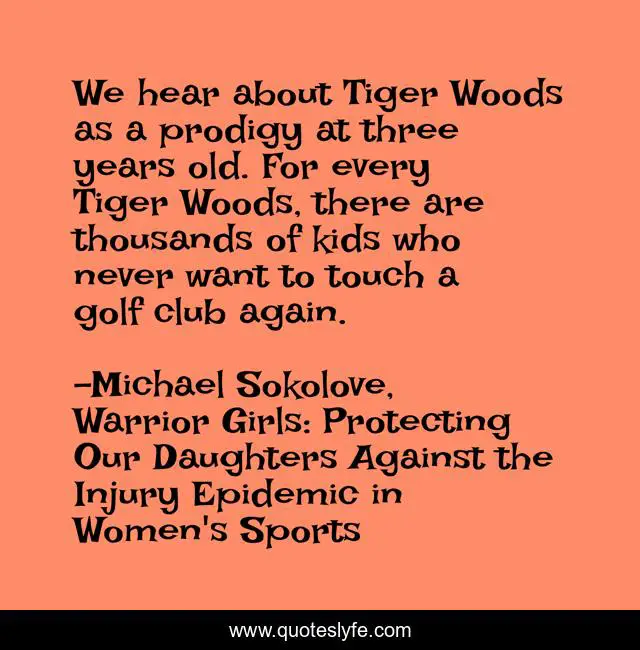 "Michael Sokolove, Warrior Girls: Protecting Our Daughters Against the Injury Epidemic in Women's Sports Quotes." Quoteslyfe.com, 2025. Mon. 08 Dec. 2025. <https://www.quoteslyfe.com/quote/We-hear-about-Tiger-Woods-as-a-244201>.