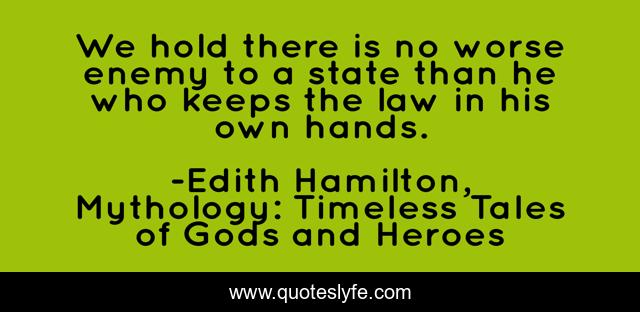 This page presents the quote "We hold there is no worse enemy to a state than he who keeps the law in his own hands.". Author of this quote is Edith Hamilton, Mythology: Timeless Tales of Gods and Heroes. .