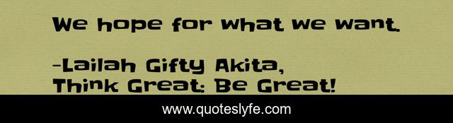 "Lailah Gifty Akita, Think Great: Be Great! Quotes." Quoteslyfe.com, 2025. Fri. 05 Dec. 2025. <https://www.quoteslyfe.com/quote/We-hope-for-what-we-want-85138>.