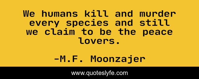 This page presents the quote "We humans kill and murder every species and still we claim to be the peace lovers.". Author of this quote is M.F. Moonzajer. This quote is about claim, murder, humans, species, kill,.
