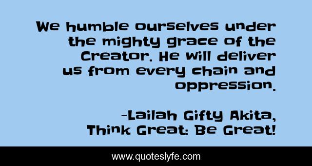 "Lailah Gifty Akita, Think Great: Be Great! Quotes." Quoteslyfe.com, 2025. Tue. 09 Dec. 2025. <https://www.quoteslyfe.com/quote/We-humble-ourselves-under-the-mighty-grace-85174>.