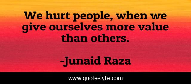This page presents the quote "We hurt people, when we give ourselves more value than others.". Author of this quote is Junaid Raza. This quote is about selfishness, hurting-others,.