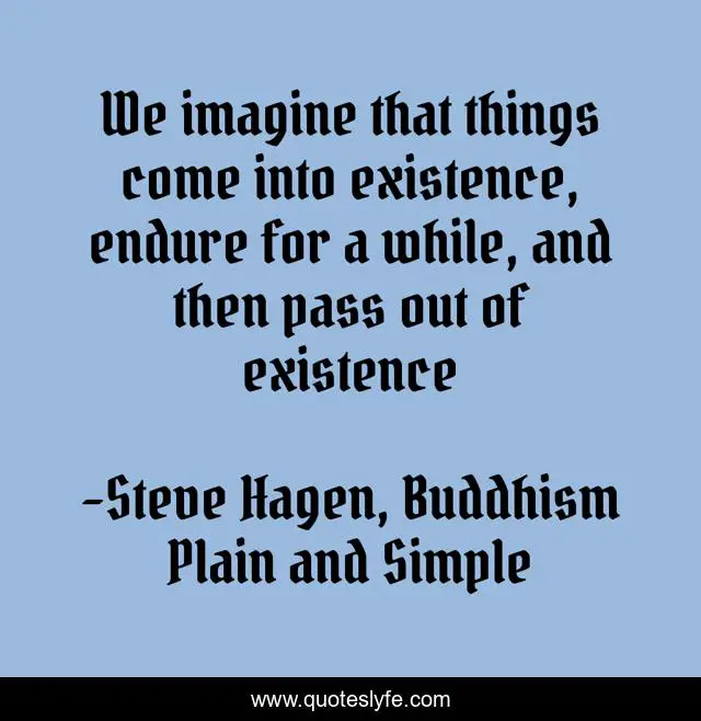 This page presents the quote "We imagine that things come into existence, endure for a while, and then pass out of existence". Author of this quote is Steve Hagen, Buddhism Plain and Simple. This quote is about zen, zen-buddhism,.