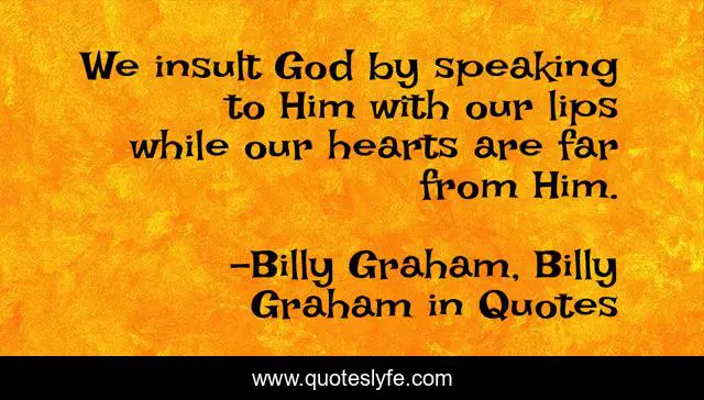 This page presents the quote "We insult God by speaking to Him with our lips while our hearts are far from Him.". Author of this quote is Billy Graham, Billy Graham in Quotes. This quote is about speech, billy-graham,.