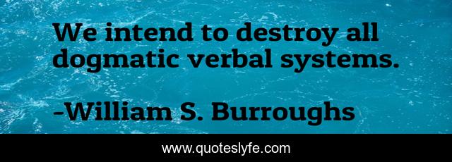 This page presents the quote "We intend to destroy all dogmatic verbal systems.". Author of this quote is William S. Burroughs. .