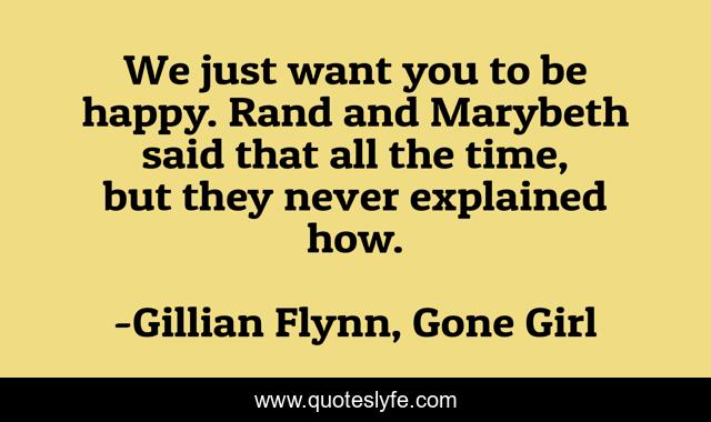 "Gillian Flynn, Gone Girl Quotes." Quoteslyfe.com, 2025. Fri. 05 Dec. 2025. <https://www.quoteslyfe.com/quote/We-just-want-you-to-be-happy-166943>.