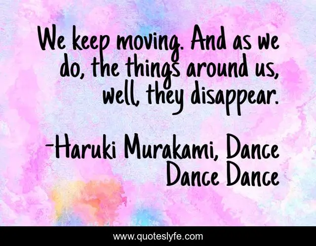 This page presents the quote "We keep moving. And as we do, the things around us, well, they disappear.". Author of this quote is Haruki Murakami, Dance Dance Dance. This quote is about change, loss, love, flow, affection,.