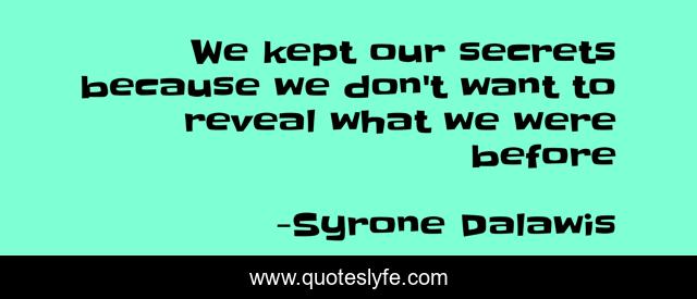 This page presents the quote "We kept our secrets because we don't want to reveal what we were before". Author of this quote is Syrone Dalawis. This quote is about life, truth, reality, sadness, mistakes, inspirational, enthusiasm, wisdom, best,.