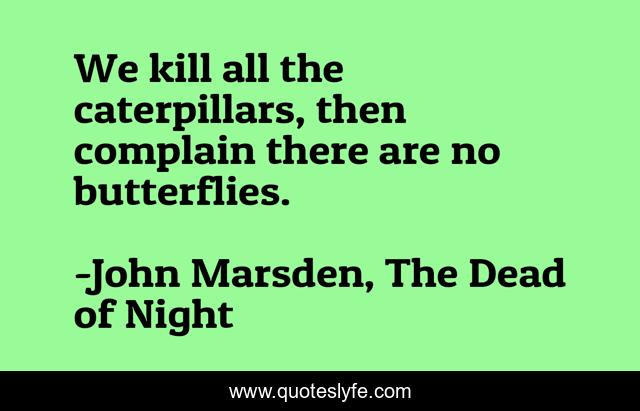 "John Marsden, The Dead of Night Quotes." Quoteslyfe.com, 2025. Sat. 06 Dec. 2025. <https://www.quoteslyfe.com/quote/We-kill-all-the-caterpillars-then-complain-72212>.