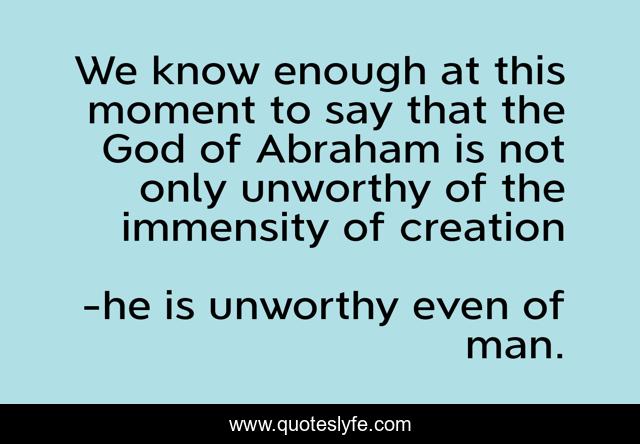 This page presents the quote "We know enough at this moment to say that the God of Abraham is not only unworthy of the immensity of creation". Author of this quote is he is unworthy even of man.. .