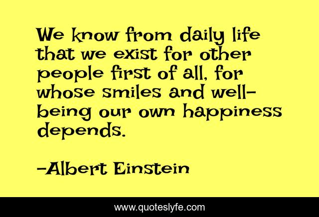 This page presents the quote "We know from daily life that we exist for other people first of all, for whose smiles and well-being our own happiness depends.". Author of this quote is Albert Einstein. This quote is about relationships, life, friendship,.
