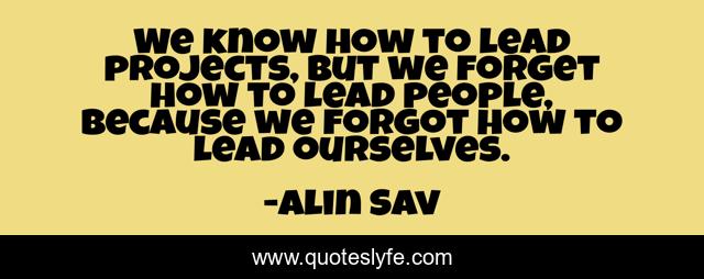 This page presents the quote "We know how to lead projects, but we forget how to lead people, because we forgot how to lead ourselves.". Author of this quote is Alin Sav. .