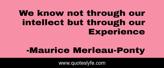 This page presents the quote "We know not through our intellect but through our Experience". Author of this quote is Maurice Merleau-Ponty. .