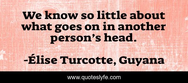 This page presents the quote "We know so little about what goes on in another person’s head.". Author of this quote is Élise Turcotte, Guyana. This quote is about communication, canadian, people,.