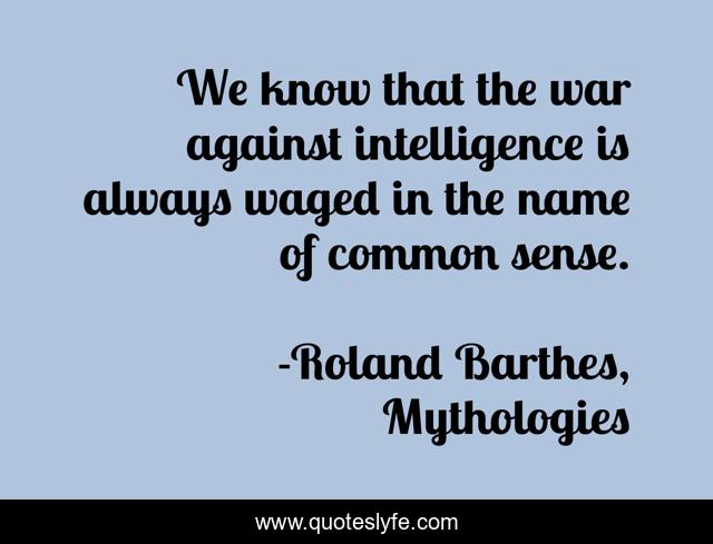 "Roland Barthes, Mythologies Quotes." Quoteslyfe.com, 2025. Tue. 09 Dec. 2025. <https://www.quoteslyfe.com/quote/We-know-that-the-war-against-intelligence-242244>.