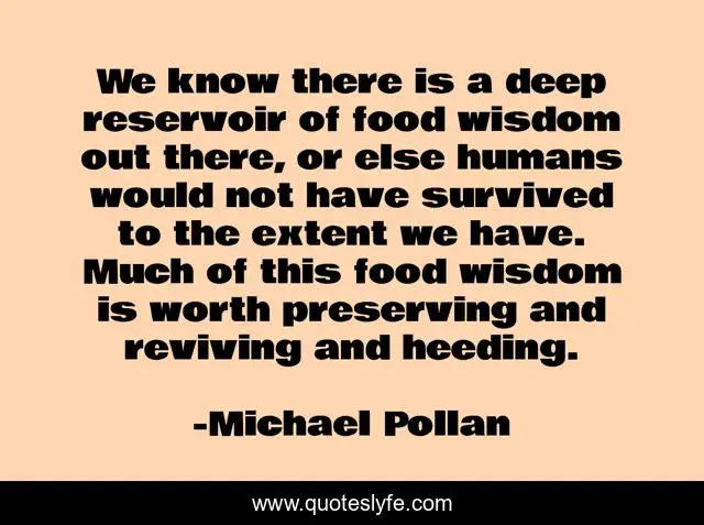 This page presents the quote "We know there is a deep reservoir of food wisdom out there, or else humans would not have survived to the extent we have. Much of this food wisdom is worth preserving and reviving and heeding.". Author of this quote is Michael Pollan. This quote is about food, deep,.