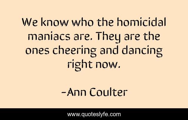 This page presents the quote "We know who the homicidal maniacs are. They are the ones cheering and dancing right now.". Author of this quote is Ann Coulter. .