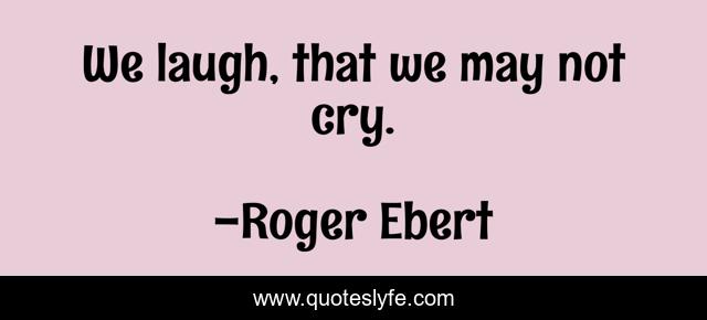 This page presents the quote "We laugh, that we may not cry.". Author of this quote is Roger Ebert. This quote is about humor, joy, comfort, sadness, tears, laughter, happiness, inspiration,.