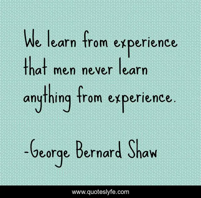 "George Bernard Shaw Quotes." Quoteslyfe.com, 2025. Fri. 05 Dec. 2025. <https://www.quoteslyfe.com/quote/We-learn-from-experience-that-men-never-6286>.