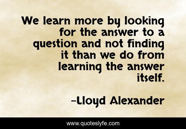 This page presents the quote "We learn more by looking for the answer to a question and not finding it than we do from learning the answer itself.". Author of this quote is Lloyd Alexander. This quote is about looking, finding, learn,.