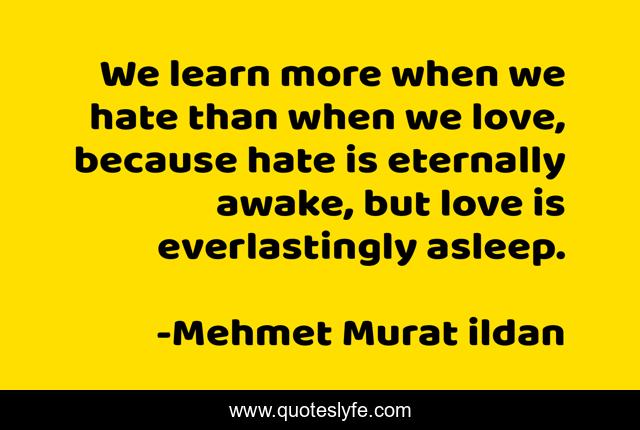 This page presents the quote "We learn more when we hate than when we love, because hate is eternally awake, but love is everlastingly asleep.". Author of this quote is Mehmet Murat ildan. .