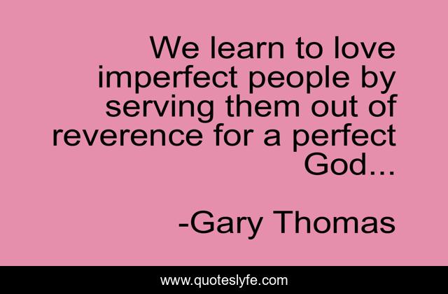This page presents the quote "We learn to love imperfect people by serving them out of reverence for a perfect God...". Author of this quote is Gary Thomas. This quote is about enthusiasm, marriage, inspirational,.
