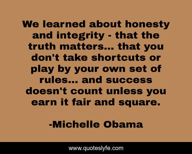 "Michelle Obama Quotes." Quoteslyfe.com, 2025. Fri. 05 Dec. 2025. <https://www.quoteslyfe.com/quote/We-learned-about-honesty-and-integrity-that-300062>.