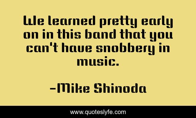 This page presents the quote "We learned pretty early on in this band that you can't have snobbery in music.". Author of this quote is Mike Shinoda. This quote is about early, band,.